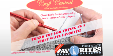 Craft Central was awarded a “First State Favorite in Delaware in 2019 - this award is chosen by votes from the public.